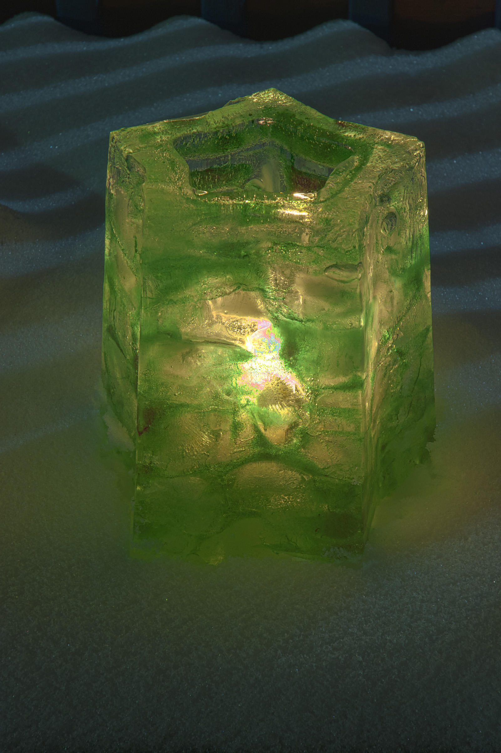 In clear and green. First tried to create all clear in one go. The inside was not frozen after three days