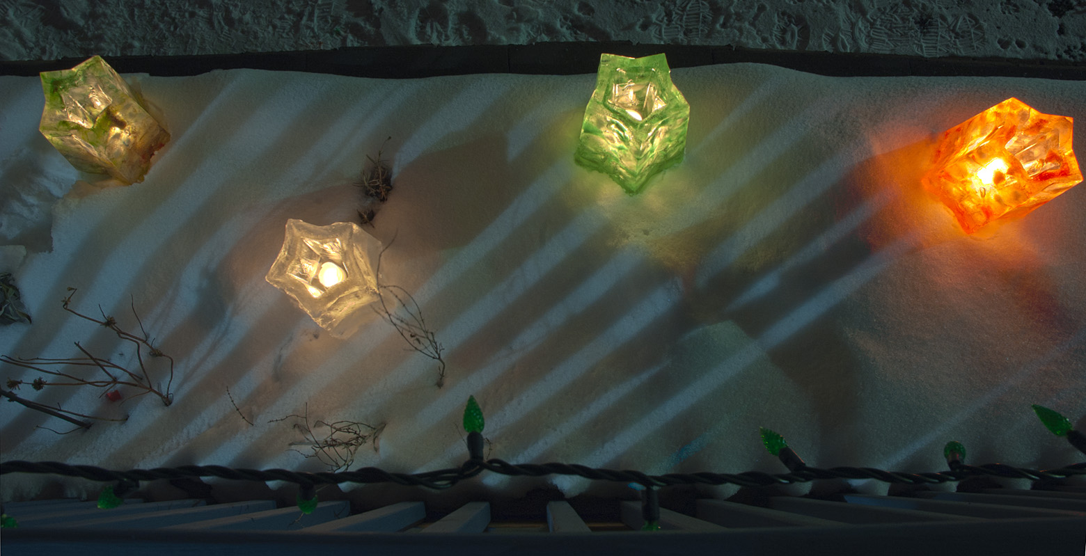 Four created for New Years Eve. Set them outside on the planters edge. Few shots from just before dark to just after.